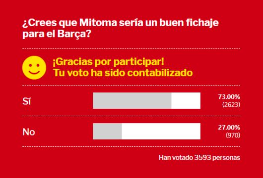현지 팬들의 반응도 긍정적이었다. 문도 데포르티보가 자체적으로 실시한 설문조사 결과 3593명 중 2623명이 미토마 영입에 찬성했다. 73%가 미토마 영입을 긍정적으로 바라보고 있었다.
