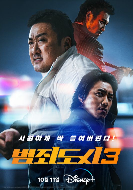 지난 5월 개봉해 1068만 관객을 동원하며 2023년 최고 흥행작에 등극한 ‘범죄도시3’가 디즈니+에서 공개됐습니다. 어떤 사건이든 범죄자들을 다 쓸어버리는 마동석의 시그니처 캐릭터 ‘마석도’가 이번에는 마약을 쫓습니다. ‘범죄도시’의 ‘장첸’(윤계상), ‘범죄도시2’의 ‘강해상’(손석구)에 이어 배우 이준혁이 ‘범죄도시3’의 새로운 빌런 ‘주성철’로 분해 그동안 보지 못한 악인의 모습을 보여줍니다. 이번에도 역시 시원시원하게 다 때려 부수는 액션으로 통쾌함을, 빵빵 터지는 유머 코드로 유쾌함을 선사합니다.