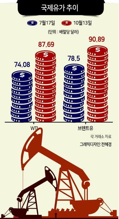 16일 뉴욕상품거래소에 따르면 서부텍사스유(WTI) 가격은 중동 정세 불안을 반영하며 전주대비 5.9% 상승한 배럴당 87.69달러로 한주를 마감했다. 여기에 블룸버그이코노믹스는 중동 분쟁에 이란이 참전할 경우 국제 유가가 150달러선을 넘어서는 ‘오일쇼크’가 올 수 있으며, 내년도 세계 성장률은 기존 전망치 대비 1%포인트 내려갈 것으로 추산했다.