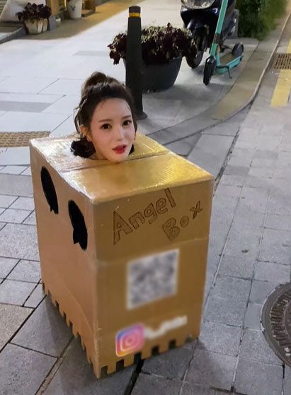 해당 글에는 한 여성이 박스를 쓴 채 가슴을 만지게 해준다는 내용이 담겼다.