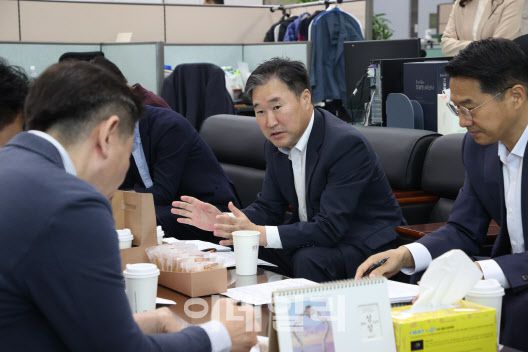 이상윤 조달청 차장(오른쪽 2번째)이 16일 정부대전청사 기자실에서 ‘주요 조달물자 품질관리 및 공급 안정성 강화방안‘에 대해 브리핑하고 있다. (사진=조달청 제공) |