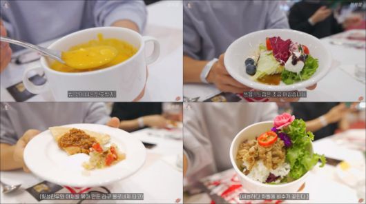 이어서 두 번째로 나온 코스는 횡성알배기 배추를 곁들인 샐러드였다. 블루베리, 청포도 등 다양한 재료가 들어가긴 했으나 정육왕은 한 입 맛을 보자마자 "진짜 너무 지극히 평범한 맛"이라며 "동네 파스타집에 가도 이 정도 수준은 나올 것"이라고 말했다.