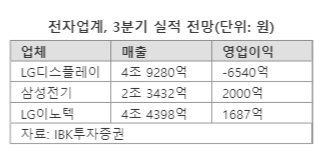 16일 관련 업계에 따르면 오는 25일 LG디스플레이·삼성전기·LG이노텍은 나란히 올해 3·4분기 실적을 발표한다.