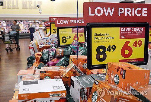 미국 로스앤젤레스(LA)의 한 마트에서 할인 행사를 광고하는 모습 |