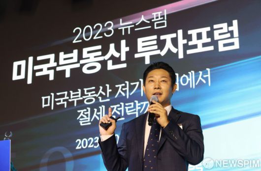 [서울=뉴스핌] 정일구 기자 = 어태수 네오집스 대표가 17일 오전 서울 여의도 페어몬트 앰배서더 서울에서 열린 2023 뉴스핌 미국부동산 투자포럼에서 '2023 미국 부동산 투자 ABC'를 주제로 강연하고 있다. 종합통신사 뉴스핌과 미국부동산 전문플랫폼 네오집스가 공동으로 주최한 이번 투자포럼은 '미국부동산 저가 매입에서 절세 전략까지'를 주제로 미국 부동산 투자자의 실질적인 고민을 해결하기 위해 마련됐다. 2023.10.17 mironj19@newspim.com