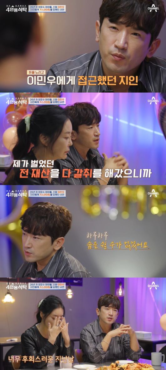 이어 이민우는 "숨고 싶었고, 힘든 시기에 옆에 있던 사람은 다 떠나가는데 그 사람이 손을 내미는데 좋아보일 수밖에 없지 않나"라고 이야기해 절친들을 안타깝게 만들었다.
