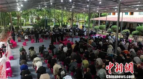 미얀마에서 온라인 사기 범죄를 벌인 중국인들이 본국으로 송환된 뒤 한곳에 모여 있다. 중국신문망 캡처 |