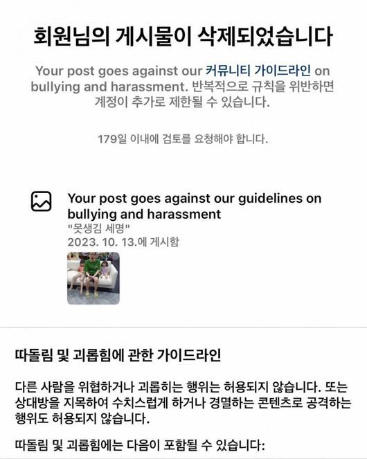 조석은 인스타그램 측 안내문과 함께 "나는 날 따돌리지 않았다고"라고 억울함을 토로했다. 그가 커뮤니티 가이드라인에 제재를 받은 이유가 '따돌림 및 괴롭힘'이었기 때문이다. 안내문에는 '다른 사람을 위협하거나 괴롭히는 행위는 허용되지 않는다. 또는 상대방을 지목해 수치스럽게 하거나 경멸하는 콘텐츠로 공격하는 행위도 허용되지 않는다'라고 설명됐다.