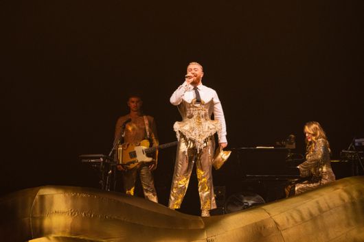 공연은 1부 ’러브‘(LOVE), 2부 ’뷰티‘(BEAUTY), 3부 ’섹스‘(SEX)등 총 세 파트로 구성됐다. 누워있는 사람의 뒷모습을 형상화한 무대에, 가터벨트를 연상케 하는 의상을 착용한 샘 스미스는 ‘아임 낫 디 온리 원’(I’m Not the Only One), ‘스테이 위드 미’(Stay With Me), ‘라이크 아이 캔’(Like I Can)과 같은 초창기 최고 히트곡들을 공연 초반 소화해냈다. 세계적으로 큰 사랑을 받은 이 곡들은 통상 공연의 절정에 부르곤 했던 곡이다.