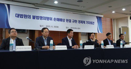 (서울=연합뉴스) 한상용 기자 = 경제6단체는 18일 '노란봉투법'으로 불리는 노조법 개정안에 반대하고 중대재해처벌법 개정을 촉구하는 입장을 발표했다.