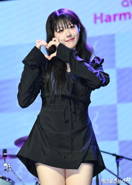 (엑스포츠뉴스 박지영 기자) 18일 오후 서울 서교동 무신사 개러지에서 걸밴드 QWER 데뷔 싱글 앨범 'Harmony from Discord(하모니 프롬 디스코드)' 발매 기념 쇼케이스가 열렸다. 이날 행사에 참석한 QWER 히나가 포토타임을 갖고 있다. 박지영 기자 jypark@xportsnews.com