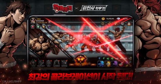 쿡앱스는 방치형 액션 RPG '광전사 키우기'와 넷플릭스 방영 중인 격투 애니메이션 '한마 바키' 컬래버레이션을 내달 17일까지 진행한다.