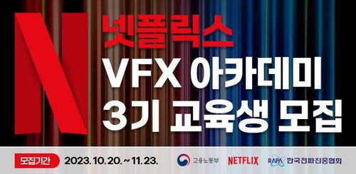 ▲ 한국전파진흥협회와 넷플릭스는 '넷플릭스 특수 시각효과(Visual Effect·VFX) 아카데미' 3기 교육생을 모집한다고 20일 밝혔다. 교육과정으로는 3D VFX 아티스트 양성 과정(25명), 2D VFX 아티스트 양성 과정(25명), 파이프라인 TD 양성과정(20명)이 운영된다. 모집 대상은 VFX 직무로 취업을 희망하는 미취업자 또는 졸업예정자이며, 선정된 교육생은 3~4개월의 집체교육과 2~3개월의 현장 실무교육을 받는다. 참여 신청은 다음 달 23일까지 홈페이지(vfxacademy.info)에서 하면 된다. (서울=연합뉴스)