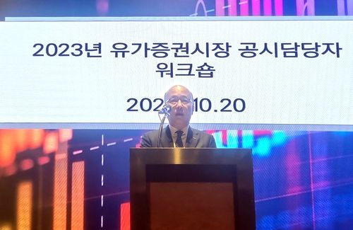 ▲ 한국거래소는 20일 유가증권시장 상장법인 공시 담당자 대상 워크숍을 양재 엘타워에서 개최했다고 밝혔다. 상장법인 204개사를 대상으로 불성실공시 예방, 영문공시 의무화와 배당절차 개선 관련 교육이 진행됐다. 거래소는 내년부터 시행되는 영문공시 의무화에 맞춰 영문공시 전용 인공지능(AI) 번역기를 탑재하고 영문 공시번역 서비스를 확대하는 등 상장법인 지원을 위해 노력한다는 방침이다. (서울=연합뉴스)