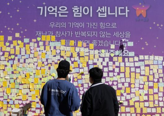 (서울=뉴스1) 이재명 기자 = 10·29 이태원 참사 1주기를 9일 앞둔 20일 오후 서울 용산구 이태원 참사 현장에 마련된 추모 공간을 찾은 시민들이 추모 메시지를 살펴보고 있다. 2023.10.20/뉴스1 /사진=뉴스1화상 |