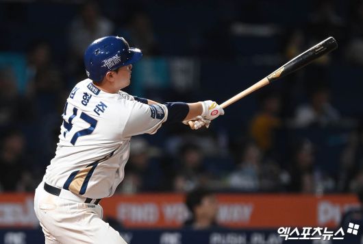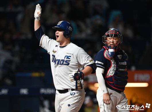 또 "오늘 준플레이오프 1차전에는 양의지 선배님께 받은 배트를 들고 경기에 나선다"며 "선배님과 NC에서 같이 뛸 때 선배님 방망이로 몇 번 쳐봤는데 좋더라. 올해는 (항저우) 아시안게임부터 시즌 막판까지 타격감이 조금 좋지 않아서 잠실 원정 때 양의지 선배님의 배트를 받아 사용 중이었는데 두산이 올 시즌이 다 끝난 만큼 더 달라고 말씀 드려서 얻어왔다"고 웃었다.