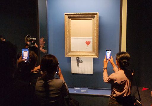 2018년 10월 소더비 경매에서 뱅크시의 ‘풍선을 든 소녀’가 104만 2000파운드에 낙찰된 순간이었다. 작품이 손쓸 새도 없이 절반이 파괴됐다. 소녀의 얼굴과 풍선을 향한 손이 프레임에 가려 보이지 않게 됐다. 이는 작가의 의도였다. 뱅크시는 액자 속에 분쇄기를 장치해 낙찰 순간 분쇄기를 원격 가동, 자신의 그림을 스스로 망가뜨렸다.
