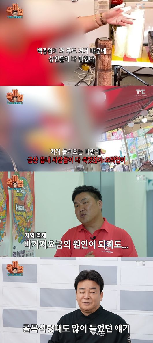 이에 백종원은 "외지 상인들에겐 죄송하다. 그 분들에겐 이런 지역 축제가 1년 농사일 수 있다. 물론 그걸 여러 지역 돌아가면서 지으시는 거지만. 그런데 지금 그나마 축제의 명맥이 살아있을 때 바꿔놓지 않으면 안 된다"라고 호소했다. 무엇보다 그는 과거 SBS 예능 프로그램 '골목식당' 시리즈부터 이어진 식당, 상권 등에 대한 솔루션 때마다 받은 주변 상인 혹은 식당 사장들로부터의 비판에 대해 "욕을 먹어야 잠을 잘 자는 것 같다"라고 너스레를 떨기도 했다. 다만 그는 "저도 상처받는다. 그래도 누군가는 해야할 일이니까 하는 것"이라고 말했다.