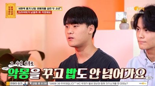 23일 방송된 KBS Joy ‘무엇이든 물어보살’에는 지난 8월 경기 성남 분당구 서현역에서 일어난 무차별 흉기 난동 사건에서 피해자에게 달려가 구급대에게 인계될 때까지 지혈을 도운 윤도일 군(18)과 음준 군(19)이 출연했다.