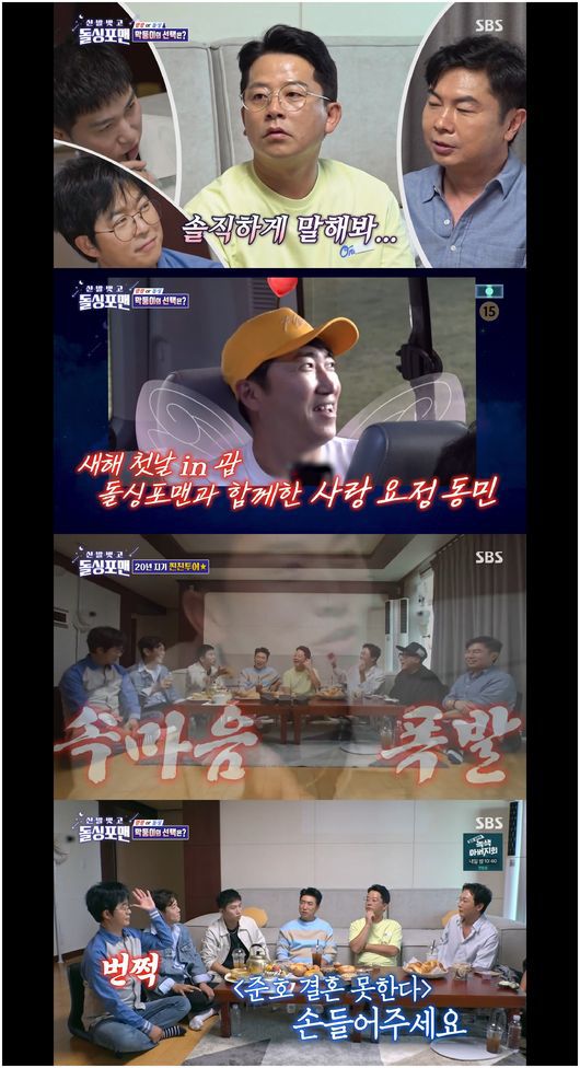 24일 방영한 SBS 예능 '신발벗고 돌싱포맨'(이하 '돌싱포맨')에서는 유세윤, 김대희, 홍인규, 장동민이 등장했다. 이들은 타사 방송에서 김준호와 함께 '독박투어'에 출연 중이다. '독박 투어'는 사비로, 한 사람에게 몰아 여행 경비를 모두 내는 예능 프로그램이다.