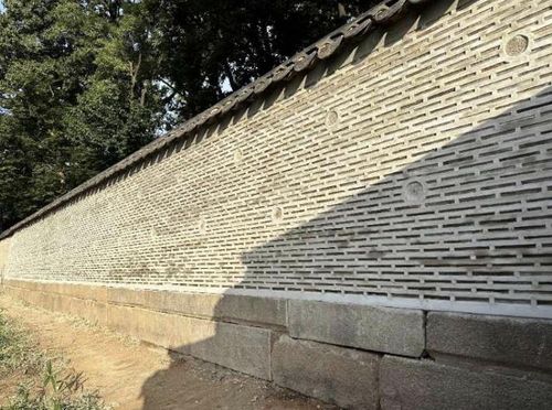담장 부분 해체 보수 공사를 마친 모습 |