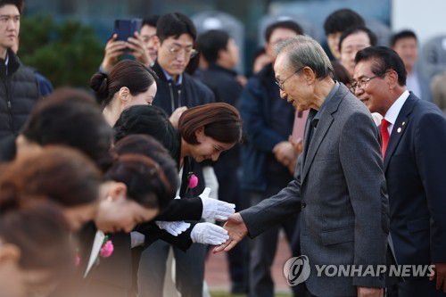이 전 대통령은 또 "젊은이나 나이 든 분이나 모두가 어려울 때일수록 나라를 걱정해야 한다"며 "나라를 지키고 사랑해야 우리의 미래가 있다"고 강조했다.