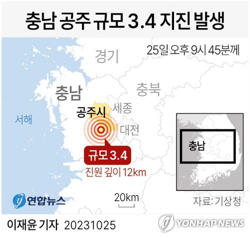 [그래픽] 충남 공주 규모 3.4 지진 발생 |