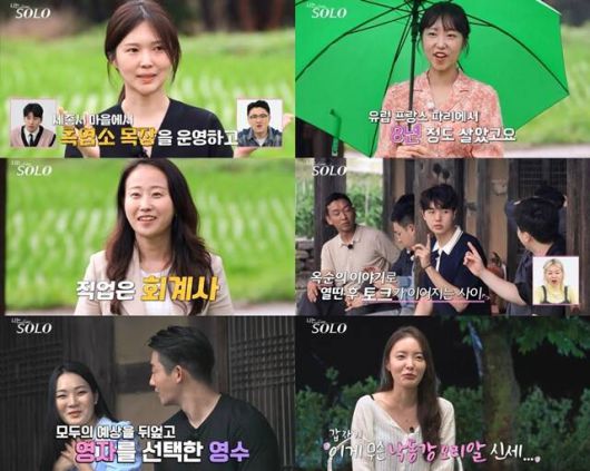 18일 방송된 SBS Plus·ENA '나는 솔로'에서 17기 옥순 순자 현숙의 직업과 나이가 공개된 후 첫 데이트 선택이 이뤄졌다. /SBS Plus·ENA 방송화면 캡처 |