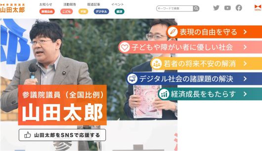 일본 자민당 소속 야마다 다로 의원의 누리집 갈무리. 2023.10.26/ |