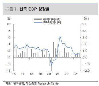 이 연구원은 “2분기 대비 경기 하방리스크는 많이 줄어들었으나, 4분기 한국 경기에 대해 보수적인 기조를 유지하며 전망치는 기존 +1.3%를 유지한다”고 전했다.