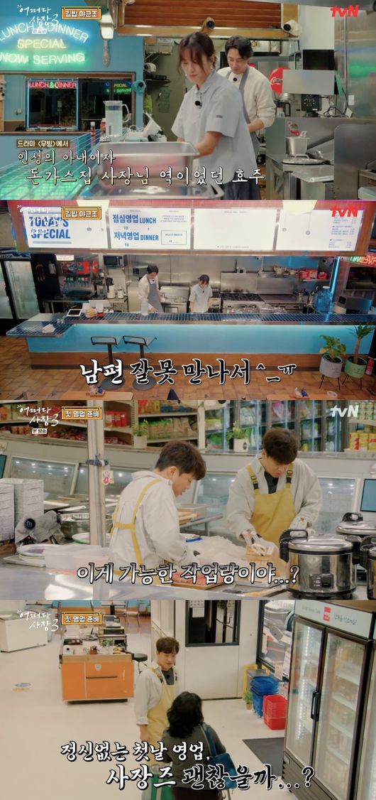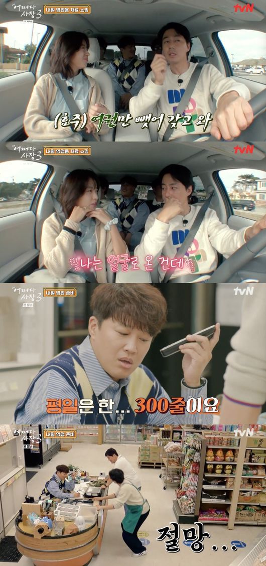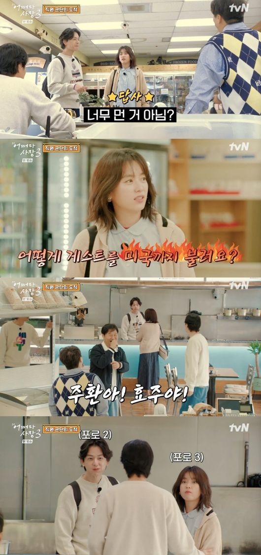 26일 첫 방송된 tvN 예능 ‘어쩌다 사장3’에서는 미국 한인마트 ‘아세아 마켓’에 입성한 ‘사장즈’ 차태현, 조인성과 ‘알바즈’ 한효주, 임주환, 윤경호가 영업 전 고군분투 하는 모습이 그려졌다.