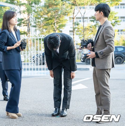 이선균이 출석에 앞서 사죄의 인사를 하고 있다. 2023.10.28 / soul1014@osen.co.kr