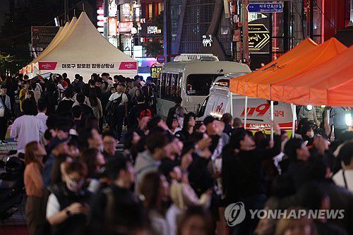 지하철역 계단에서는 서울교통공사 직원이 통행 인원을 통제했고 소방당국의 임시응급의료소와 마포구청의 핼러윈 합동상황실이 꾸려졌다.