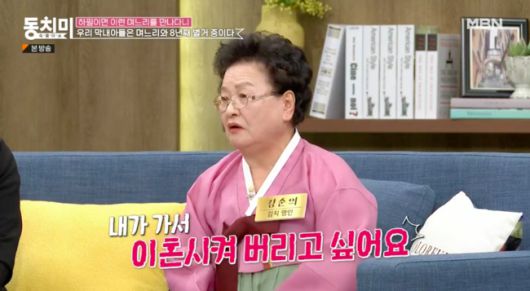 [OSEN=박하영 기자] ‘속풀이쇼 동치미’ 김치 명인 강순의가 막내 아들과 며느리의 별거를 토로하며 이혼 시키고 싶다고 밝혔다.