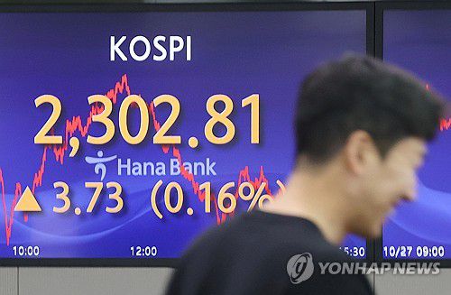 29일 금융투자업계에 따르면 코스피는 지난 27일 2,302.81로 1주일 전인 지난 20일(2,375.00)보다 3.03% 하락했다.