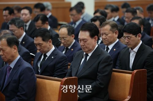 윤석열 대통령이 29일 서울 성북구 영암교회에서 열린 이태원 참사 1주기 추도 예배에서 기도하고 있다. 이날 추도예배에는 국민의힘 김기현 대표, 윤재옥 원내대표, 추경호 부총리, 이상민 행정안전부 장관 등도 함께 했다. 대통령실 제공 |