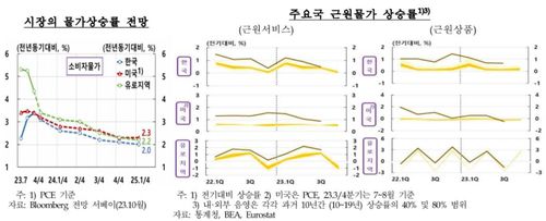 한은은 주요국의 물가 상승 둔화 동인이 차별화 양상을 보여온 만큼 물가 목표 수렴 시점도 국가별로 다소 차이를 보일 것으로 예상했다.