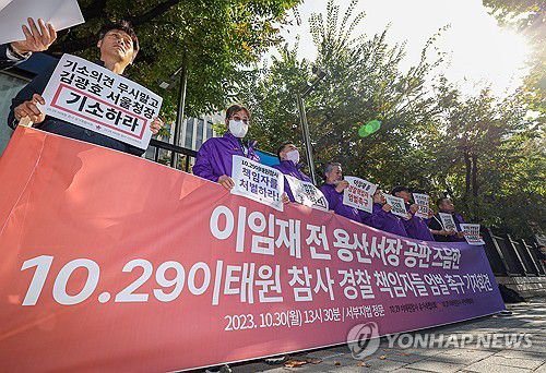 유가협 등은 이날 이임재 전 서울 용산경찰서장의 공판이 예정된 서울서부지법 정문 앞에서 기자회견을 열어 "이 전 서장에 대한 신속한 재판 진행과 엄벌, 김광호 서울경찰청장에 대한 기소, 윤희근 경찰청장에 대한 수사를 촉구한다"고 밝혔다.