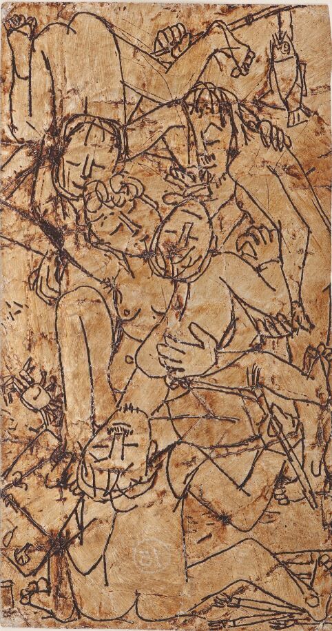 1950년대 그려진 이중섭의 은지화 ‘가족을 그리는 화가’. 현행 문화재보호법에서는 제작 시점이 50년 지난 작고작가의 작품이어서 국외 반출이 엄격하게 규제되는 일반동산문화재 범주에 들어간다. 국립현대미술관 제공 |