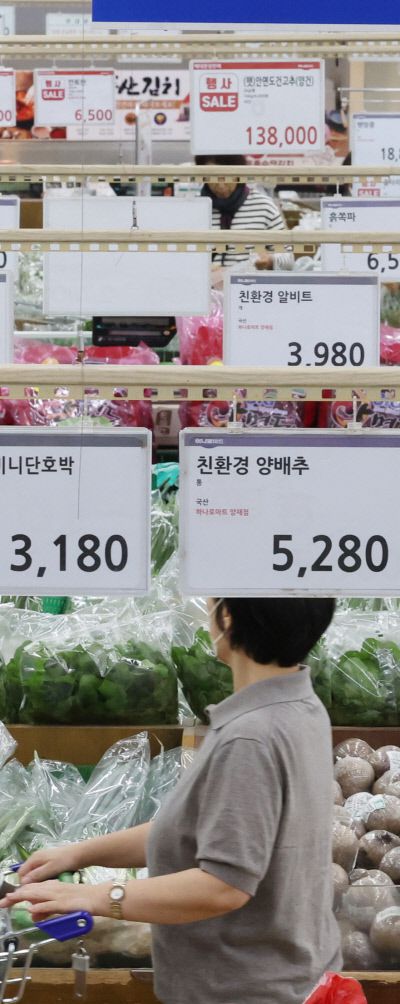 소비자들이 서울 서초구 하나로마트 양재점에서 진열된 과일과 채소 등을 살펴보고 있다. 연합뉴스 |