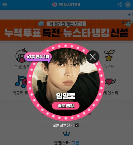 [더팩트 | 이나래 기자] 가수 임영웅이 주간 아이돌 랭킹사이트 '팬앤스타' 솔로 랭킹에서 47주 연속 1위를 차지했다.