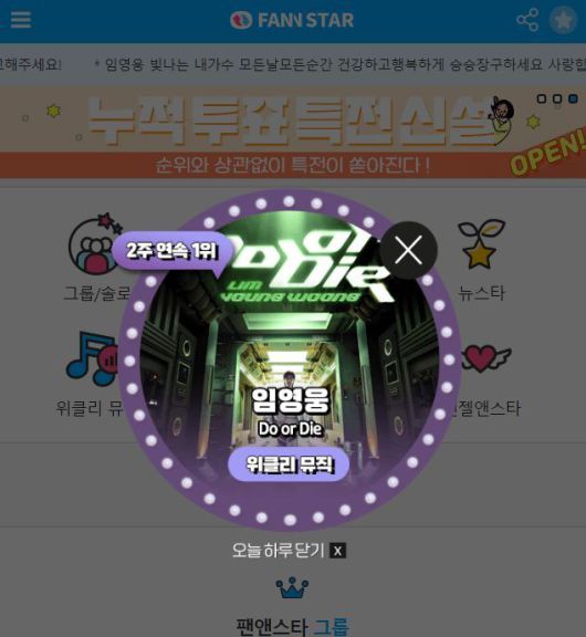 임영웅의 1위 소식과 함께 투표에 참여한 팬들이 '팬앤스타' 공식 문자메시지함으로 축하 인사를 보냈다. 닉네임 '티슈물'은 "임영웅 Do or Die 응원합니다"라고 전했다.