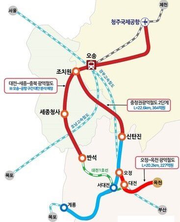 광역철도가 놓이면 대전 반석역에서 정부세종청사, 오송, 청주 도심을 거쳐 청주공항을 잇게 되는데, 대전에서 청주공항까지 90분에서 50분으로 이동 시간을 40분가량 단축할 것으로 기대를 모은다.