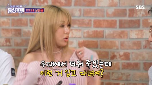 이날 제시는 어깨가 시원하게 노출된 분홍색 오프숄더 카디건을 입었다. 탁재훈은 제시 의상을 가리키며 "제시는 늘 이렇게 입고 다녀서 야하게 보이지 않는다"고 말했다.