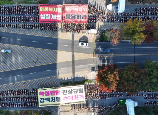 지난 10월 28일 오후 서울 여의도 국회 앞에서 교사들이 아동복지법 개정을 촉구하고 있다./연합 |