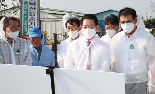 (무안=연합뉴스) 전승현 기자 = 김영록 전남지사는 1일 소 바이러스 질병인 럼피스킨병 방역 현장을 점검했다.