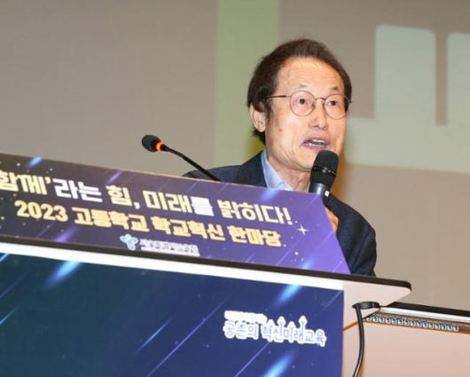 조희연 서울시교육감이 지난달 31일 서울 서초구 서울교육연수원에서 열린 '2023 고등학교 학교혁신 한마당'에 참석해 인사말을 하고 있다. 서울시교육청 제공 |