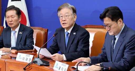 李 “尹 시정연설에 실망” 더불어민주당 이재명 대표(가운데)가 1일 서울 여의도 국회에서 열린 최고위원회의에서 전날 윤석열 대통령의 시정연설에 대해 “매우 실망스러웠다. 국정기조 전환은 없었고 재정건전성에 대한 집착만 더 강해진 것 같다”고 비판했다. 서상배 선임기자 |