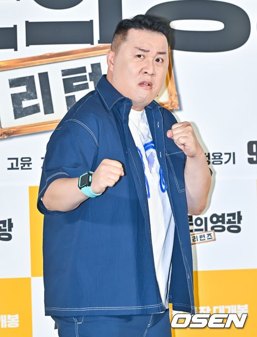 [OSEN=박준형 기자] 5일 서울 용산아이파크몰 용산 CGV에서 영화 ‘가문의 영광: 리턴즈’(감독 정태원) 제작보고회가 진행됐다.‘가문의 영광: 리턴즈’는 잘나가는 스타 작가 ‘대서’(윤현민 분)와 가문의 막내딸 ‘진경’(유라 분)을 결혼시키기 위해, 온갖 음모를 꾸미는 장씨 가문의 사생결단 결혼성사 대작전을 그린 코미디 영화다. 오는 21일 개봉.정준하가 포즈를 취하고 있다. 2023.09.05 / soul1014@osen.co.kr |