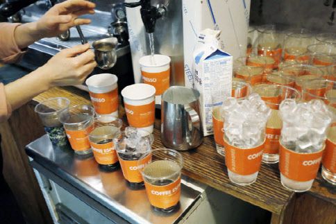 서울 시내 한 카페에 일회용컵이 쌓여있다.(사진=뉴스1) |